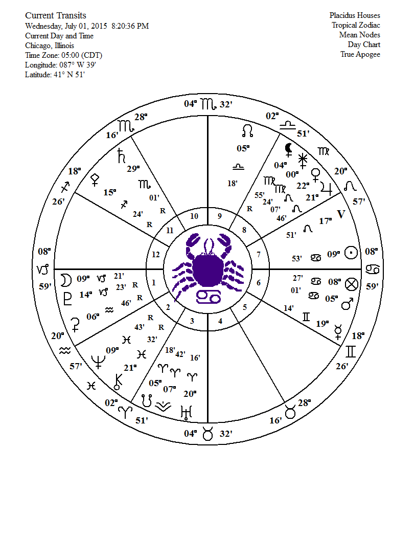 full moon chart 07 01 2015Behold the full moon, behold my Self. Into every crevice light shines, finds its way amongst the wounds, the dreams, the tiny heart fluttering gives it a kick start and voila! Leap into the void, beliefs tumble into forgetfulness; suddenly not there, only a perpetual sense of the mystery—and no need to understand!