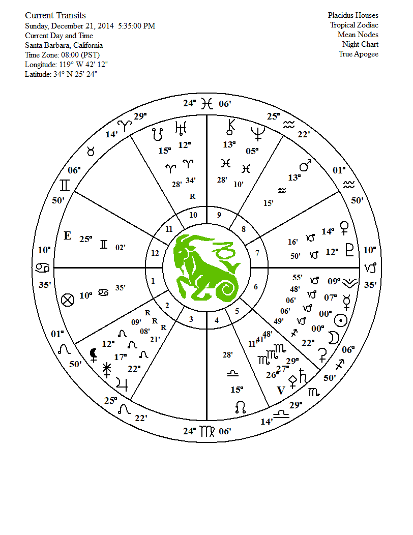 At 14 degrees Cancer this Full Moon is influenced by the star Sirius at the same location, the brightest star in the heavens. Sirius has a long history as a navigational point and by its rising just before the sun, a precursor of the flooding of the Nile. What is it we are being guided toward and what abundance will be the result of this journey? To answer this question consider the role of the outer planets in this chart. At 12 or 13 degrees they promote freedom, independence and awakening (Uranus 12 deg. Aries), elimination and transformation (Pluto 13 deg. Capricorn conjunct the sun) and healing (Chiron 13 deg. Pisces) as they aspect directly the Sun/Moon axis.